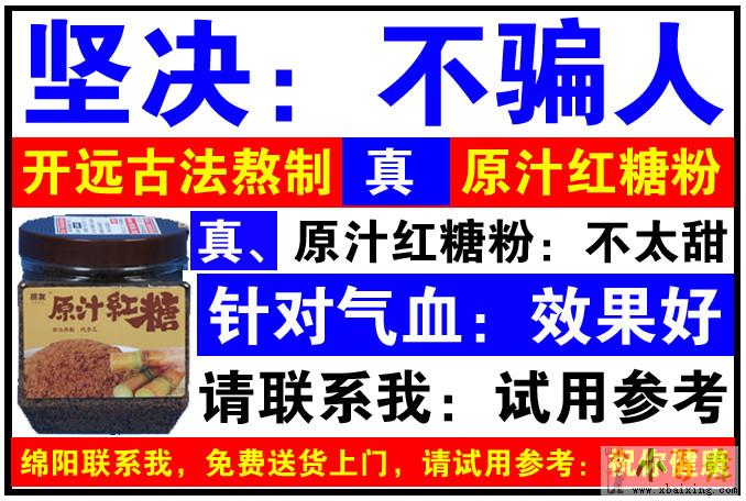 我保证做到:A、 坚决:不乱宣传,不忽悠人;B、 绵阳:免费送货上门,请你试用参考;C、 声明:真、开远古法熬制、真、原汁红糖粉!不太甜:针对气血好,请试用参考。...